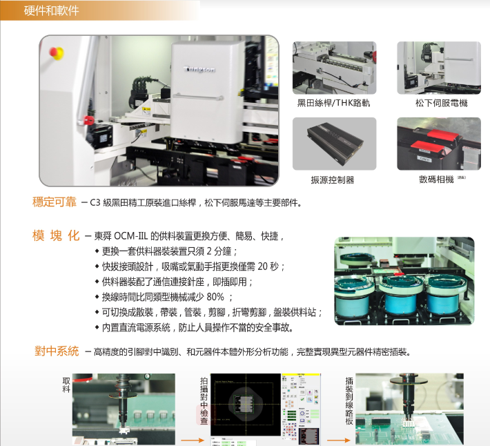 東舜的OCM-IIL(左圖)是東舜在長達數年實際生產過程中,綜合遇到的問題以及經驗,研發出來的一款最適合國情的異型元件插件機,